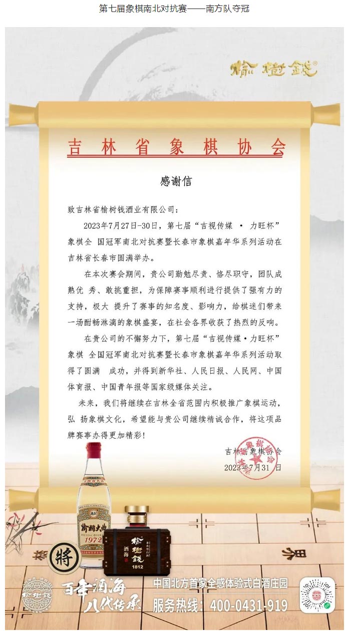 榆樹錢酒業(yè)恭賀象棋南北對(duì)抗賽圓滿落幕