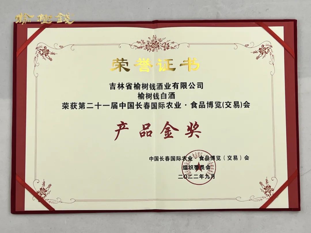喜報 | 榆樹錢酒業(yè)榮獲第二十一屆中國長春國際農(nóng)業(yè)·食品博覽(交易)會產(chǎn)品金獎